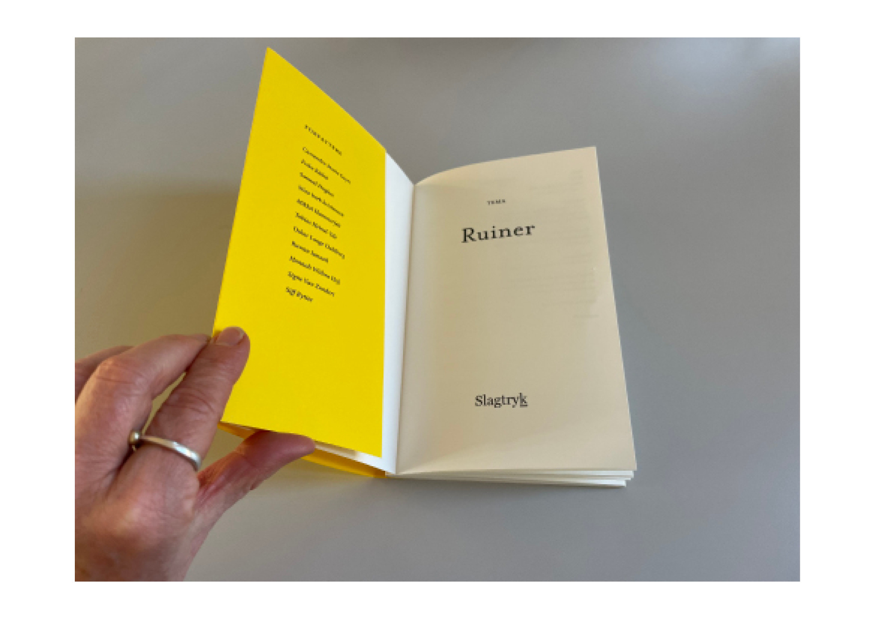 Tilrettelæggelse af temanummer for Slagtryk. Temanummeret indeholder poesi og kortprosa, som forholder sig til temaet ruiner. Illustrationerne er alle af Ladies Drawing Night Cph – gruppen som i hele 2025 har stået for forsidedesign af Slagtryks månedlige online tidsskrift . Opgave udført i samarbejde med Ulla Korgaard.